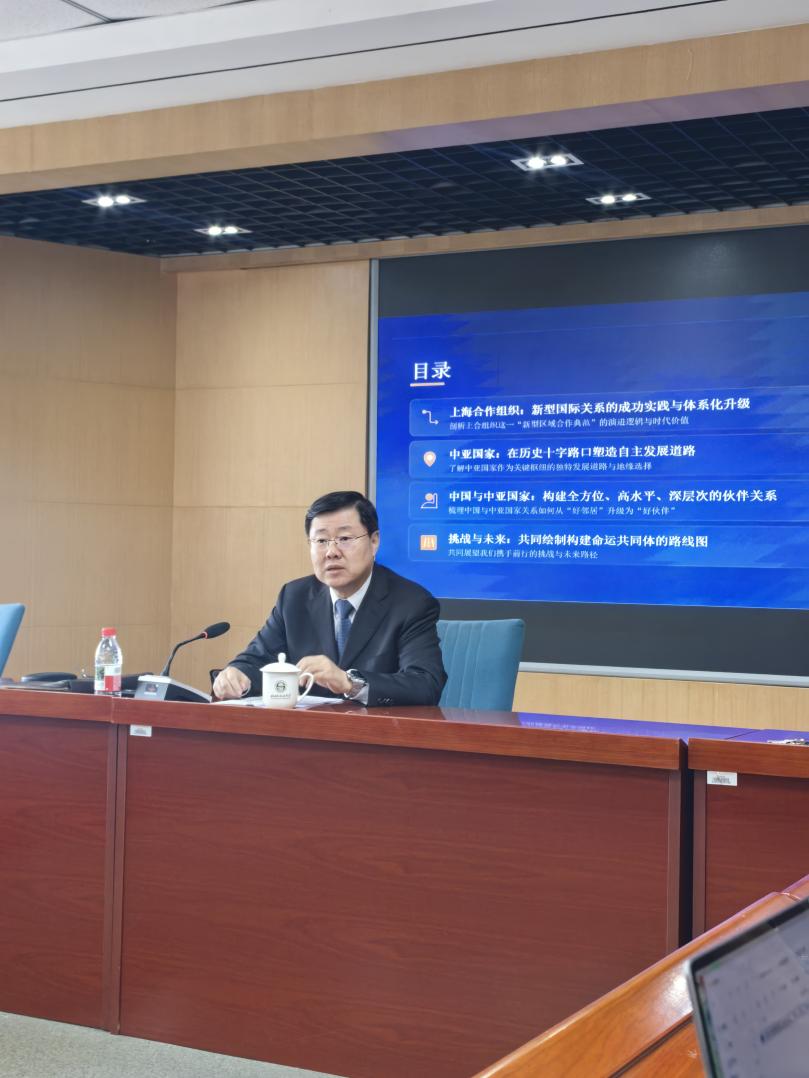 После церемонии открытия центр пригласил господина Сунь Лицзе, бывшего посла Китая в Узбекистане и Словакии, выступить с лекцией в аудитории C517 корпуса «Лидэ». Лекция была посвящена теме «Совместное построение более тесного сообщества единой судьбы Шанхайской организации сотрудничества и формата “Китай – Центральная Азия”». В ходе выступления господин Сунь Лицзе подробно проанализировал эволюционную логику и актуальную значимость ШОС как «образцовой модели нового типа регионального сотрудничества», представил развернутый обзор формирования всеобъемлющих, высокоуровневых и глубоких партнерских отношений между Китаем и странами Центральной Азии, а также подробно разъяснил тенденции развития двустороннего взаимодействия в рамках механизма «Китай – Центральная Азия».